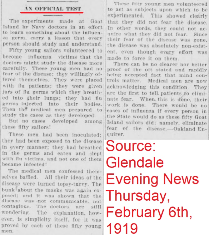 !Not once in the history of medicine and science, has a healthy person become ill with a cold or flu when exposed to a 'virus'!The classic germ theorist in the wild!Goat Island sailors influenza